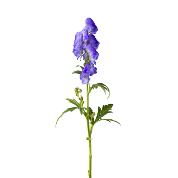 Planta perenne de la familia Ranunculaceae con flores azul púrpura. Se utiliza en dosis bajas para dolores musculares, neuralgias y fiebre, gracias a sus propiedades analgésicas y antiinflamatorias bajo estricta supervisión.